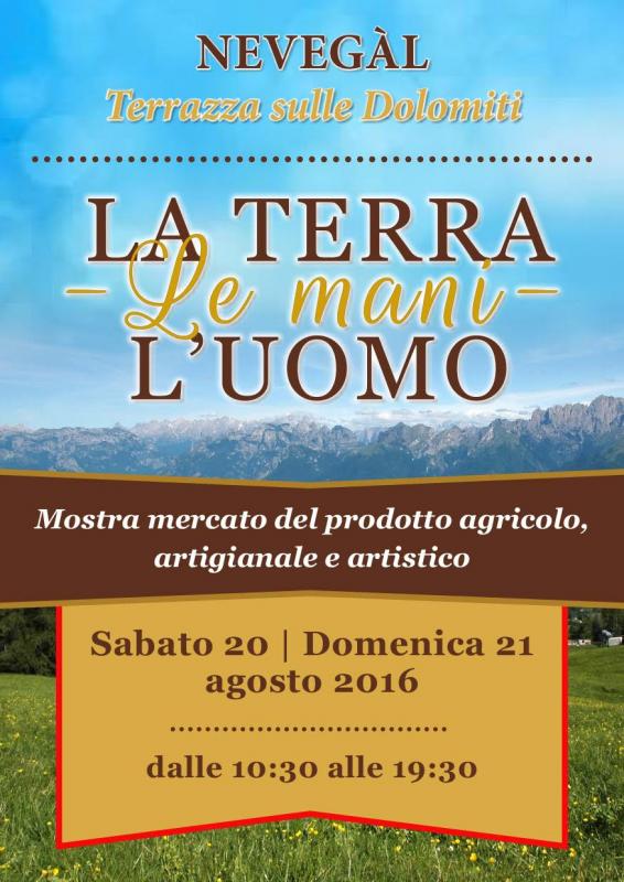 Mostra mercato del prodotto agricolo, artigianale e artistico “La terra, le mani, l’uomo” è fissato per sabato 20 e domenica 21 agosto 2016 dalle 10,30 alle 19,30 nel Piazzale del Nevegal.