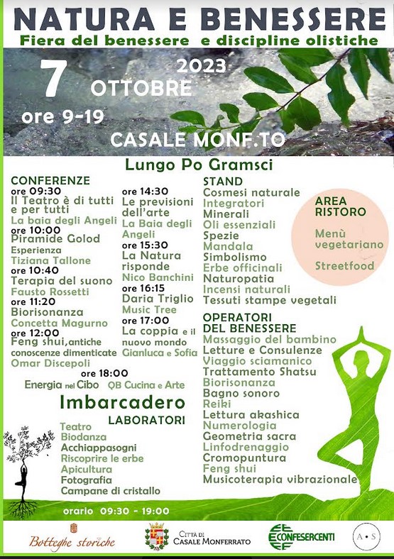 All'evento Natura e Benessere si svolgeranno laboratori, conferenze, presentazione di tecniche energetiche ed espressive da parte degli autori e operatori, performance sonore offerte al pubblico da operatori con un maturo percorso di consapevolezza personale.