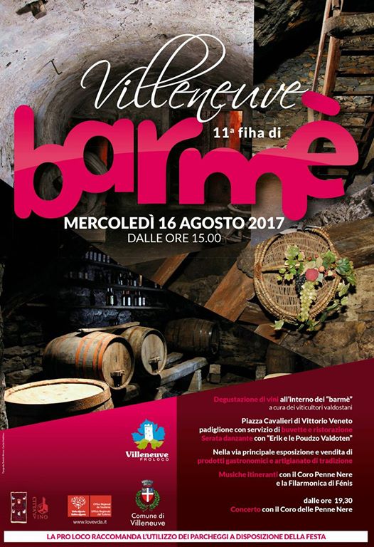 I barmè sono cantine naturali uniche nel loro genere scavate nella roccia viva della Becca, la collina che sovrasta il paese. Dalle 14,30 di mercoledi 16 agosto 2017 saranno 21 i Barmè aperti al pubblico; tutti nel borgo e nei vari vicoli ai piedi della Becca. Ogni cantina ospiterà un produttore di vino; quest'ultimo metterà a disposizione dei partecipanti assaggi dei propri nettari bianchi e rossi.