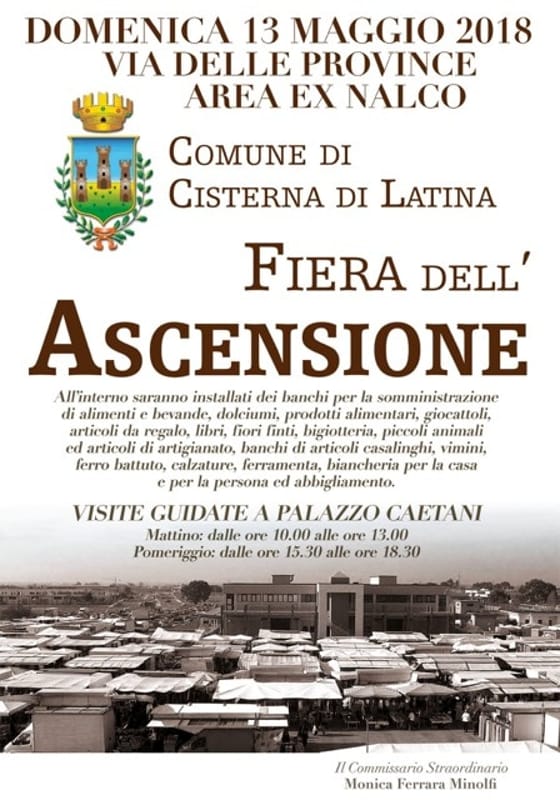 Torna anche quest’anno il tradizionale appuntamento con la Fiera dell’ascensione, storica iniziativa commerciale cisternese che si terrà domenica prossima, 13 maggio.