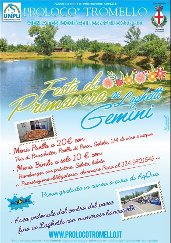 In occasione della Fiera di Primavera, il prossimo 25 Aprile, vi aspettiamo presso i Laghetti Gemini di Tromello per passare in nostra compagnia una giornata all'aria aperta