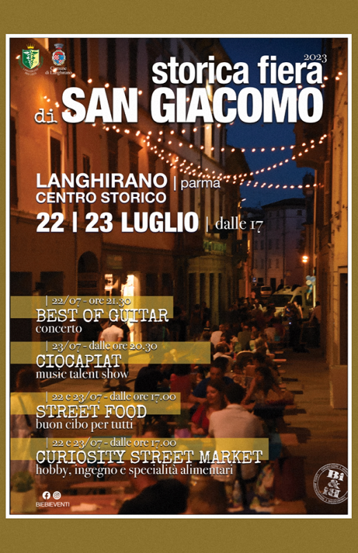 22 - 23 Luglio 2023, Langhirano Food Music Festival, la centenaria Fiera di San Giacomo