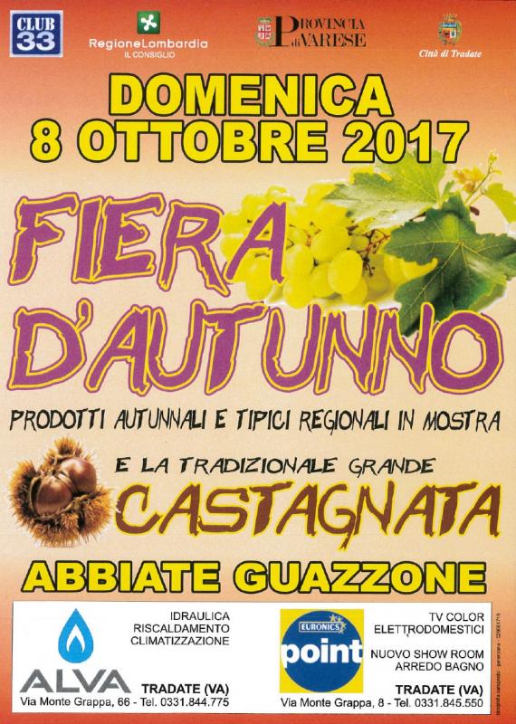 Il Club 33 - con il Patrocinio della Regione Lombardia, della Provincia di Varese, dell'Assessorato alla Cultura e dell' Amministrazione comunale della Città di Tradate - organizza il tradizionale appuntamento della "FIERA D'AUTUNNO" che quest'anno giunge alla sua XXI edizione: prodotti autunnali, prodotti regionali e castagnata, mostra di pittura.