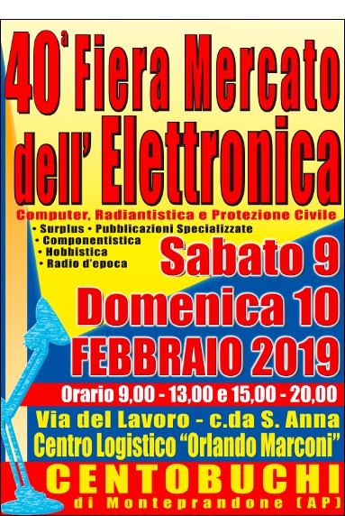 A Centobuchi di Monteprandone in provincia di Ascoli Piceno si svolge nei giorni Sabato 09 e Domenica 10 Febbraio 2019 la 40a Edizione della Fiera dell'Elettronica.