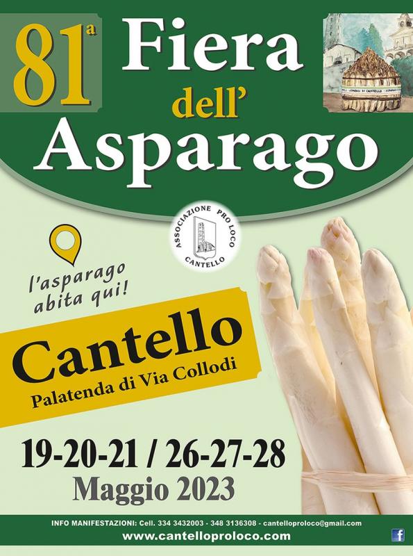 La 80° Fiera dell'Asparago a Cantello (VA), presso il palatenda di Via Collodi, si svolge il 19-20-21 e 26-27-28 maggio 2023.