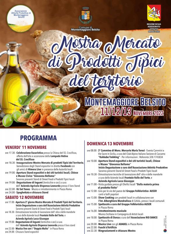 A Montemaggiore Belsito , dal 11 al 13 Novembre 2022 e, giornate all'insegna della valorizzazione e della promozione dei prodotti alimentari e artigianali di qualità,con particolare attenzione a due specialità locali quali l'olio e la mandorla.
