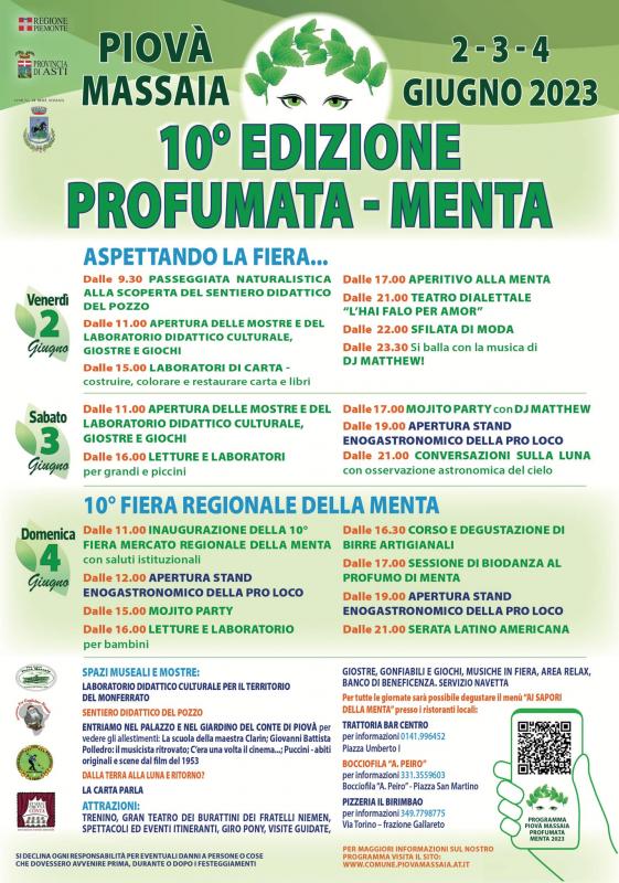 Profumata menta, la Fiera della Menta Dal 2 al 4 giugno 2023 Piovà Massaia in provincia di Asti.