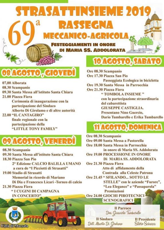 A Marsala in provincia di Trapani si svolge nei giorni 08, 09, 10 e 11 Agosto 2019 la 69a edizione della Fiera di Strasatti, la rassegna meccania agricola "Strasattinsieme 2019".
