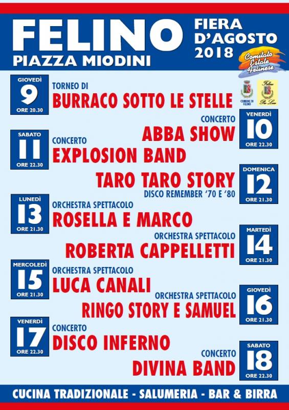 A Felino il divertimento continua con la Fiera d'Agosto che porta nella cittadina parmense una serie di eventi prima e dopo il Ferragosto.