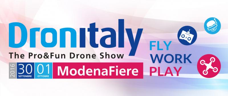 Due anime, una sola fiera, tante novità: Dronitaly 2016 si svolgerà a ModenaFiere venerdì 30 settembre e sabato 1 ottobre con una formula innovativa che vedrà affiancate l’area PRO, dedicata agli utilizzi professionali con le aziende protagoniste del settore e un programma convegnistico di eccellenza, e l’area FUN dove appassionati e hobbisty potranno veder sfrecciare velocissimi mini-droni nel più grande circuito indoor d’Italia (FPV RACING SHOW), visitare le aree espositive e partecipare agli eventi in programma.