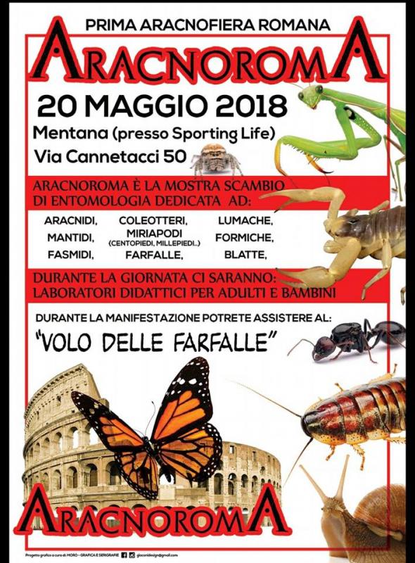 ARACNOROMA è la mostra scambio di entomologia deidcata soprattutto ad aracnidi, mantidi, fasmidi, coleotteri, miriapodi (centopiedi, millepiedi..) farfalle, lumache, formiche, blatte, piante , minerali e fossiliIl nostro obbiettivo è di riunire appassionati, allevatori, studiosi e curiosi in una giornata dedicata a questo meraviglioso mondo!