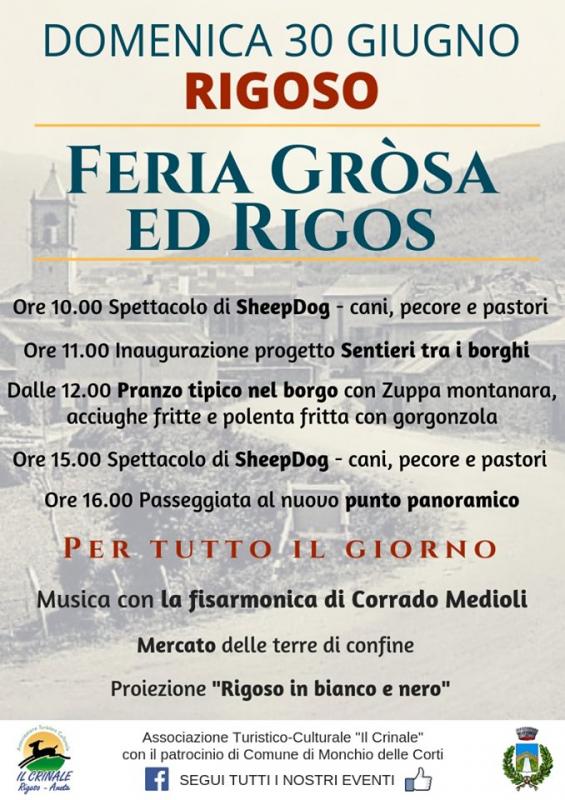Domenica 30 giugno 2019 si terrà a Rigoso, nel Comune di Monchio delle Corti in provincia di Parma, la “FEIRA GROSA ED RIGOS” (Fiera Grossa a Rigoso).