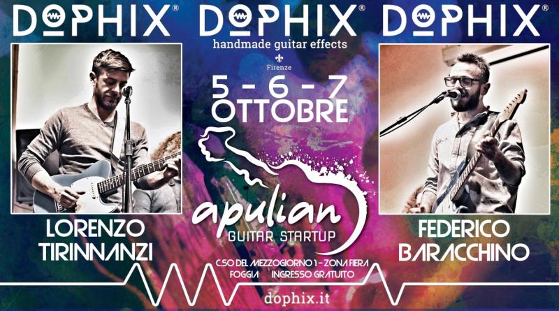 Apulian Guitar Startup si terrà nei giorni di 5, 6 e 7 Ottobre, presso la Quarantesima Edizione della Fiera d’Ottobre Dauno di Foggia, e DOPHIX®, effetti boutique per chitarra e basso, prodotti artigianali Made in Florence, oltre ad essere presente con i propri effetti, nei giorni di Venerdì 5 e Sabato 6, darà luogo a dimostrazioni con dei minilive tenuti da due musicisti del proprio roster di artisti: Federico Baracchino e Lorenzo Tirinnanzi.
