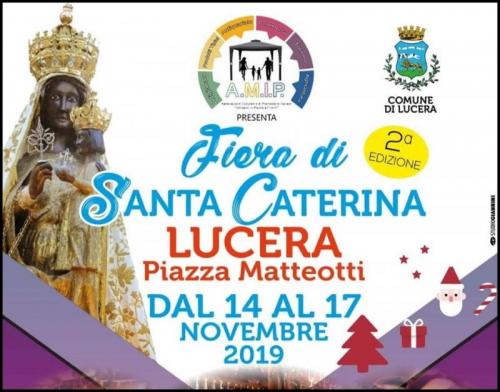 Torna dal 14 al 17 Novembre 2019 la 2a edizione della Fiera di Santa Caterina a Lucera, in piazza Matteotti al centro della città con tantissime novità per il natale. Prodotti tipici di qualità idee per casa. Regalo e tanta animazione e musica natalizia