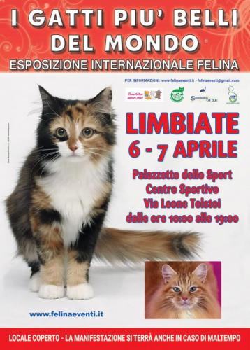 Al Palazzetto dello Sport di LIMBIATE (Via Leone Tolstoi, 84) si svolgerà l'Esposizione Internazionale Felina "I GATTI PIU' BELLI DEL MONDO" nei giorni di sabato 6 e domenica 7 aprile, con orario dalle ore 10 alle ore 19, con la partecipazione di tanti di gatti di razza che, sotto l'egida dell'Associazione Serenissima Cat Club (I.S.C.C.), verranno giudicati da Giudici Internazionali W.C.F. (World Cats Federation) nel Best in Show in programma al pomeriggio di entrambe le giornate.
