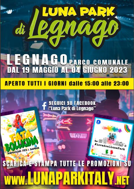 Luna a Park a Legnago Dal 14 Maggio al 4 Giugno 2023 Parco Comunale sara aperto tutti i giorni dalla 15.00 alle 23.00