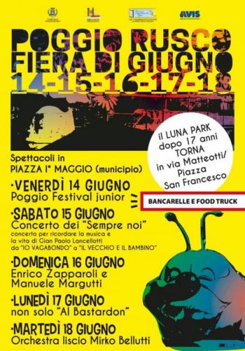 La Pro Loco di Poggio Rusco (MN) organizzadal 14 al 18 Giugno 2019 a Poggio Rusco (MN), in Via G. Matteotti la “Fiera di Giugno”,
