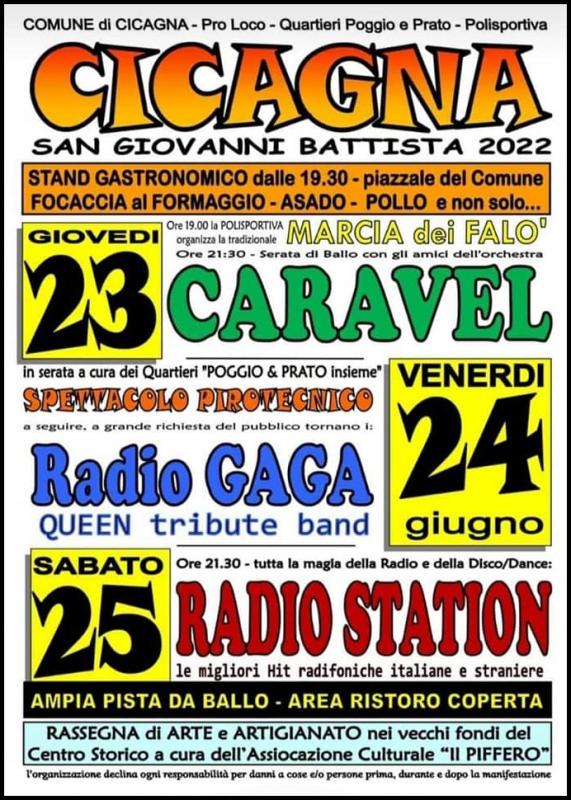 Dopo due anni di stop forzato si riparte con la Festa Patronale di San Giovanni Battista dal 23 al 25 Giugno 2022 a Cicagna.