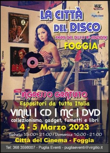 Presso la Città del Cinema a Foggia si svolge nei giorni 04 e 05 Marzo 2023 la 8a edizione della Fiera La Città del Disco.