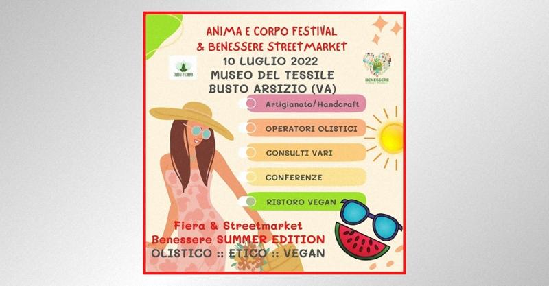 Anima & Corpo Fiera del Benessere e Benessere StreetMarket vi aspettano per la prossima SUMMER EDITION dell'evento: l'appuntamento è presso il Museo del Tessile il 10 Luglio 2022.