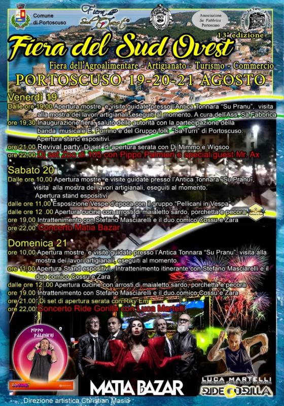 A Portoscuso in provincia di Carbonia-Iglesias si svolge nei giorni 19, 20, 21 Agosto 2022 la 13a Edizione della Fiera del Sud Ovest.