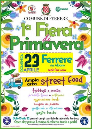 Domenica 14 Aprile 2024, dalle ore 10.00 alle 22.00, presso la sede della Pro Loco di Ferrere è in programma la "Fiera di Primavera".