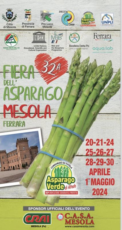 Dal 20 al 22 Aprile e dal 24 al 30 Aprile e 01 Maggio 2024 si terrà a Mesola la 32a Edizione della Fiera dell'Asparago.