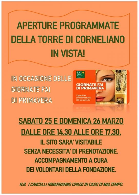 Sabato 25 e domenica 26 Marzo, un weekend di visite guidate gratuite e senza prenotazione alla torre medievale decagonale di Corneliano d'Alba, a cura dei volontari della Fondazione Torre di Corneliano onlus.