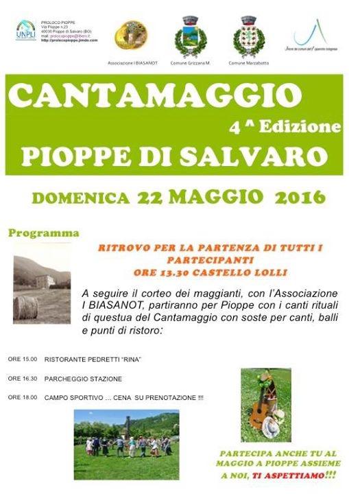 Domenica 22 maggio 2016 La Proloco Pioppe organizza con la collaborazione dell'Associazione I Biasanót la 4^ edizione del Cantamaggio a Pioppe di Salvaro