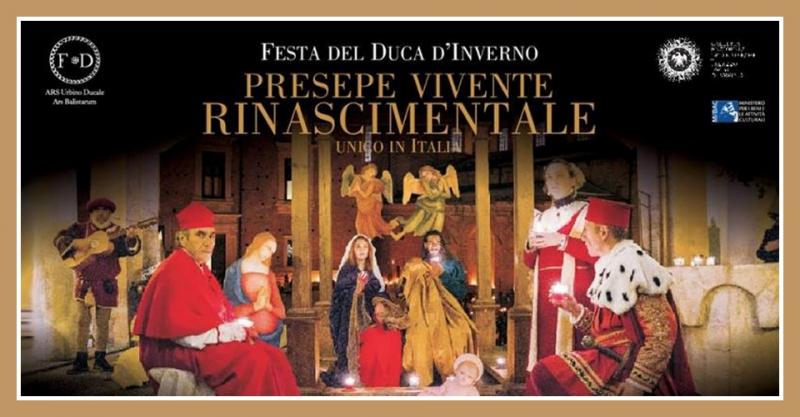 In attesa del Natale, l’Associazione Rievocazioni Storiche Urbino Ducale in collaborazione con la Galleria Nazionale delle Marche, propone per l'VIII edizione della Festa del Duca d’inverno il Presepe Vivente Rinascimentale, un omaggio alla magnificenza della corte e un'occasione per riscoprire il lascito di Federico da Montefeltro.