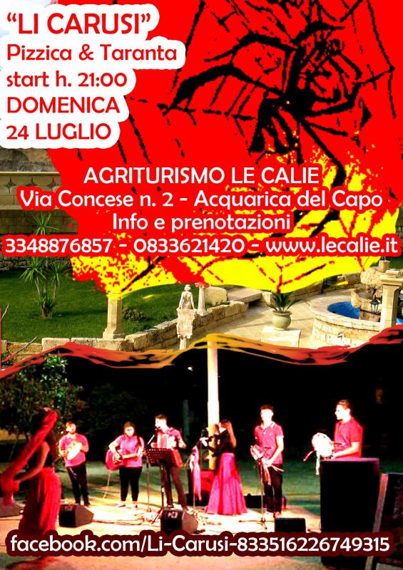 "Li Carusi" allieteranno la serata con canti e balli di pizzica e taranta.