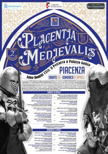 E' in arrivo la NUOVA EDIZIONE DELLA KERMESSE "PLACENTIA MEDIEVALIS": imperdibile palio storico della città organizzato dalla nostra Associazione Culturale Archistorica insieme alla Scuola d’Arme Gens Innominabilis con la partecipazione del Comune di Piacenza. L’evento, dedicato al 650esimo anniversario della morte di Francesco Petrarca, si terrà in piazza Cavalli nelle giornate di sabato 20 e domenica 21 aprile, e sarà incentrato sulla rievocazione della visita che il Poeta compì nella nostra città nel giugno dell’anno 1351, accolto con tutti gli onori dal podestà visconteo. Il ricco programma dell’evento comprende: il corteo storico petrarchesco con dame e cavalieri; i tornei di scherma medievale; le conferenze a tema storico, le visite tematiche alla piazza, alla chiesa di S. Ilario e al Palazzo Gotico condotte dal nostro arch. Manrico Bissi; la presentazione di un nuovo e inedito documentario sulla presenza del Petrarca a Piacenza (curato dal nostro arch. Bissi e dai sigg.ri Gigi Ruzzenenti e Silvano Tinelli). E ancora: le bancarelle di prodotti tipici artigianali; lo street food con le più gustose tipicità gastronomiche locali; i figuranti in costume medievale con tanti giochi e attività per i bambini.