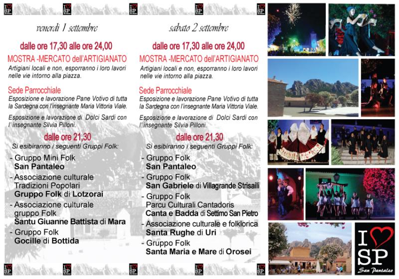 Tutto pronto a San Pantaleo, per l'atteso appuntamento con il folklore . L'associazione due zero,che in collaborazione con l'Accademia Tradizioni Popolari Gruppo Folk San Pantaleo e con il Comune di Olbia organizza il consueto appuntamento estivo, ha predisposto un programma tanto vario quanto accattivante. Otto gruppi folkloristici per scoprire una terra che non si immagina. Una mostra mercato dell'artigianato con esposizione e lavorazione del Pane Votivo di tutta l'isola, l'esposizione dei Dolci Tipici delle giornate importanti. artigiani capaci di creare gioielli, ceramiche, creazioni artistiche, rosari, tessuti , macramè , miele e opere in ginepro.