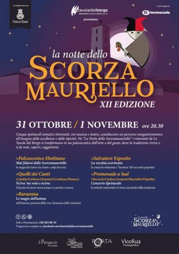 Nelle serate di giovedì e venerdì, a partire dalle ore 20.30 i quattro ristoranti associati, Il Panigaccio, Vico Rua, Piazzetta Santa Sofia e PortaDogana si trasformeranno, anche quest' anno, in un palcoscenico dell'arte e del gusto, ospitando cinque spettacoli itineranti, tra musica e teatro, e proponendo un itinerario enogastronomico all'insegna delle tipicità e delle eccellenze del territorio. Tema portante di questa edizione 2019 de La Notte dello Scorzamauriello è, infatti, il “ritorno alle origini”.