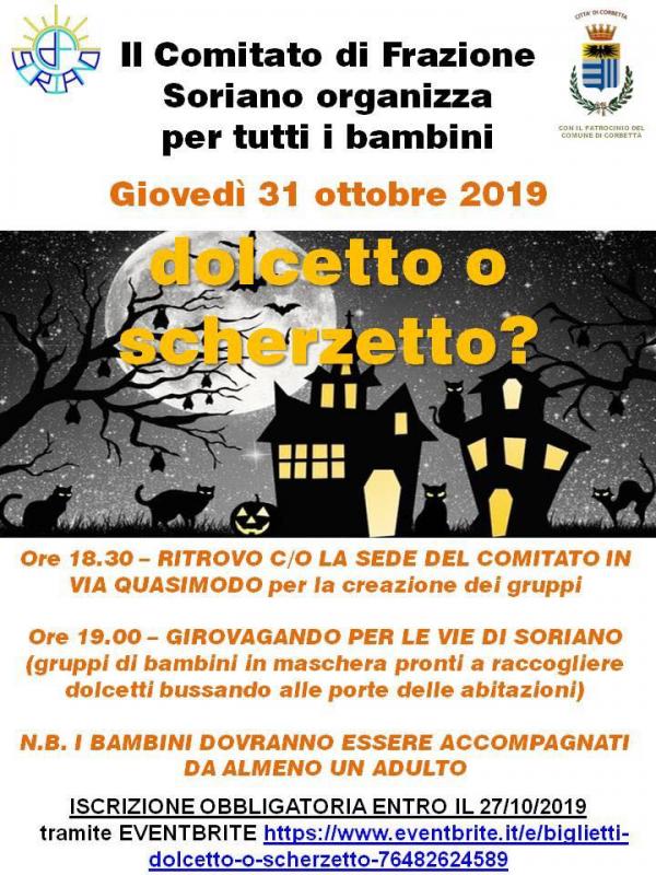 Il Comitato di Frazione Soriano organizza il 31 Ottobre per la Festa di Halloween: DOLCETTO O SCHERZETTO?