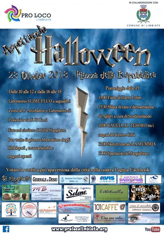 La Pro Loco di Limbiate invita ad aspettare Halloween domenida 28 ottobre 2018 a Limbiate in Piazza della Repubblica e via Fratelli Cervi insieme a un maghetto d'eccezione: Harry Potter.