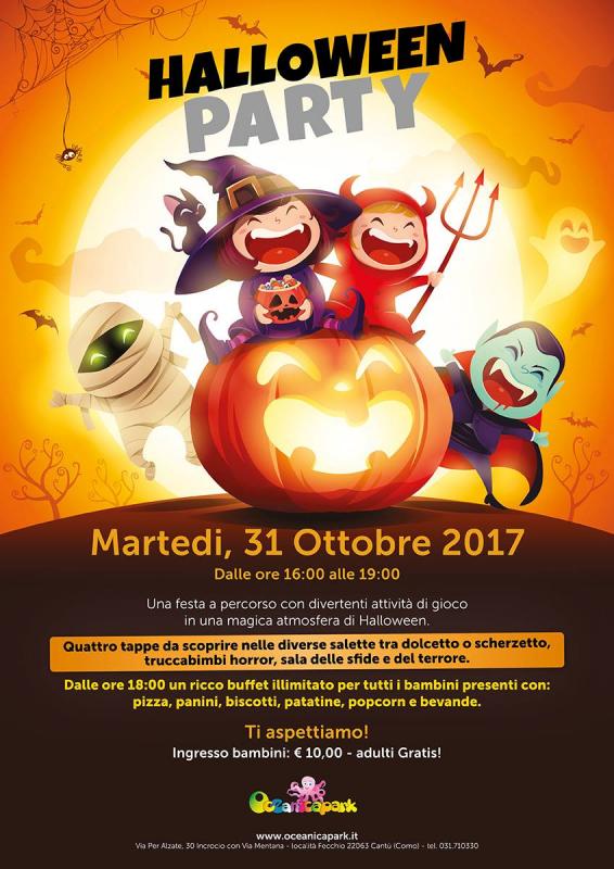 Martedì 31 ottobre 2017, dalle ore 16 alle 19, si festeggia Halloween all'Oceanica Park di Cantù, il parco divertimenti al coperto per bambini con percorso di scivoli, tunnel e molto altro ancora..