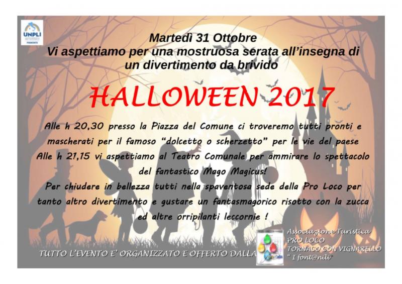Martedì 31 ottobre 2017 Festa di Halloween a Tornaco organizzata dalla Pro Loco.