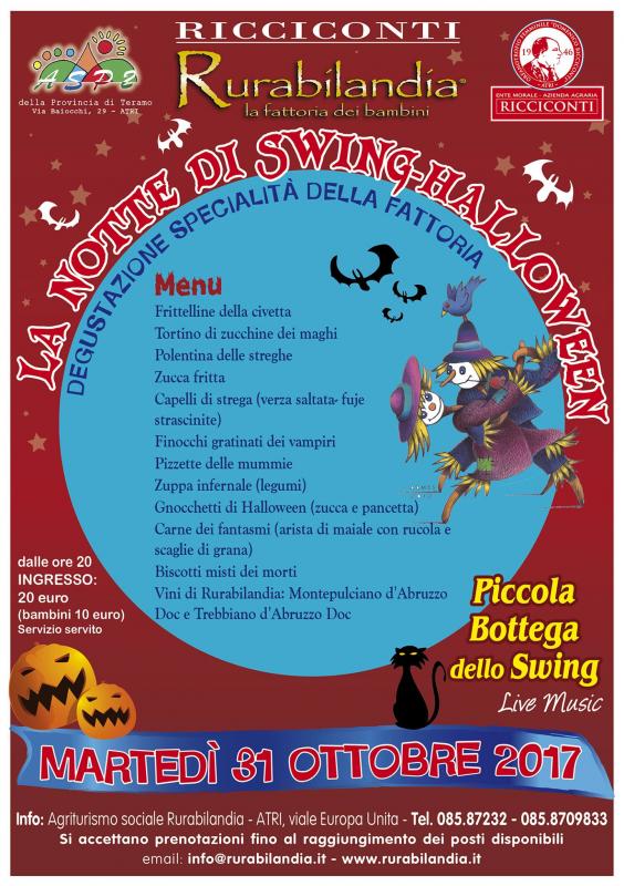 31 ottobre 2017, dalle ore 19.30, Notte di Halloween all'Agriturismo Rurabilandia con degustazioni delle specialità della fattoria