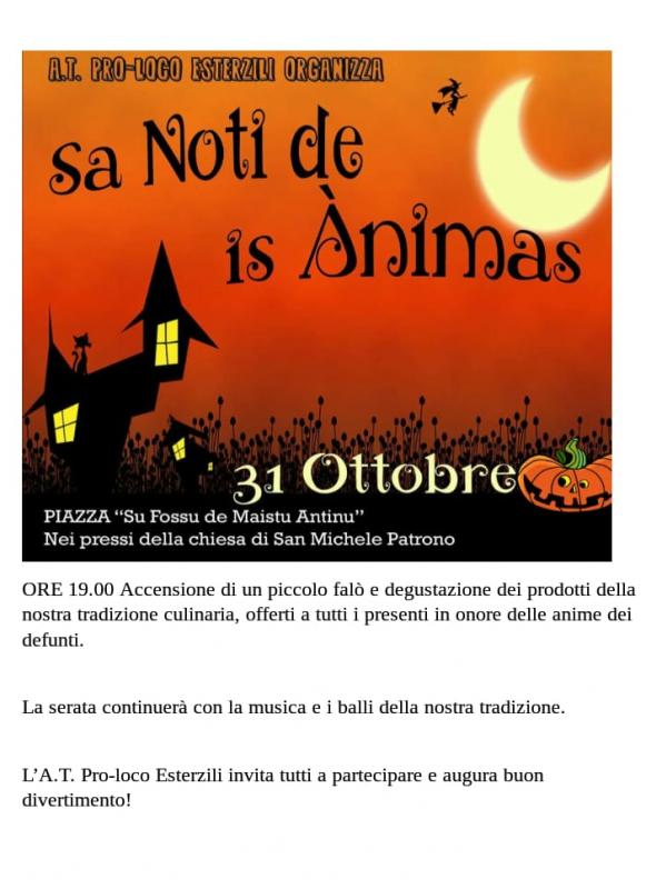 In occasione della ricorrenza de "Su Prugadoriu", giorno in cui è usanza bussare alle case del paese chiedendo un'offerta per le anime dei morti, l' A.T. Pro-loco Esterzili organizza "SA NOTI DE IS ÀNIMAS".