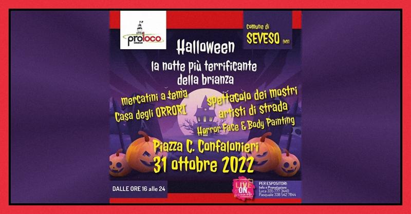 In Piazza C. Confalonieri a Seveso in provincia di Monza e Brianza si svolge nella giornata di Lunedì 31 Ottobre 2022, dalle ore 16.00 alle ore 24.00, la Festa di Halloween, la notte più terrificante della brianza.
