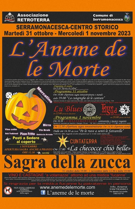 Martedì 31 Ottobre e Mercoledì 01 Novembre 2023 torna L'Aneme De Le Morte con la Sagra Della Zucca a Serramonacesca.