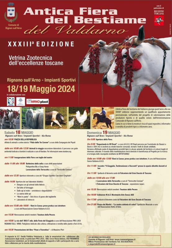 L’Antica Fiera del bestiame del Valdarno giunge quest’anno alla sua XXXIII edizione rappresentando un qualificato appuntamento promozionale, nell’ambito del progetto di valorizzazione delle produzioni tipiche e di qualità voluto dall’Amministrazione Comunale di Rignano sull’Arno.