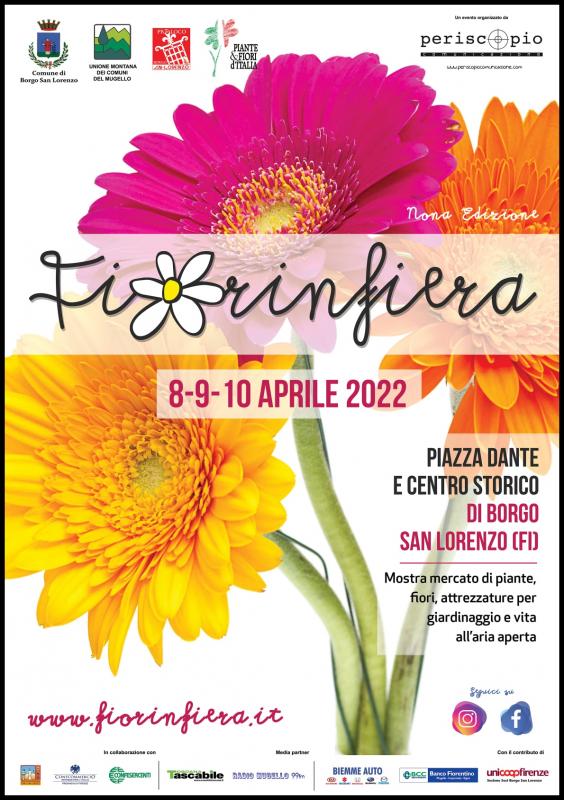 Presso i Giardini di Piazza Dante a Borgo San Lorenzo (Mugello) in provincia di Firenze si svolge nei giorni 08, 09, 10 Aprile 2022 la nuova edizione di Fiorinfiera, la Mostra Mercato di piante, fiori, attrezzature per giardinaggio e vita all'aria aperta.