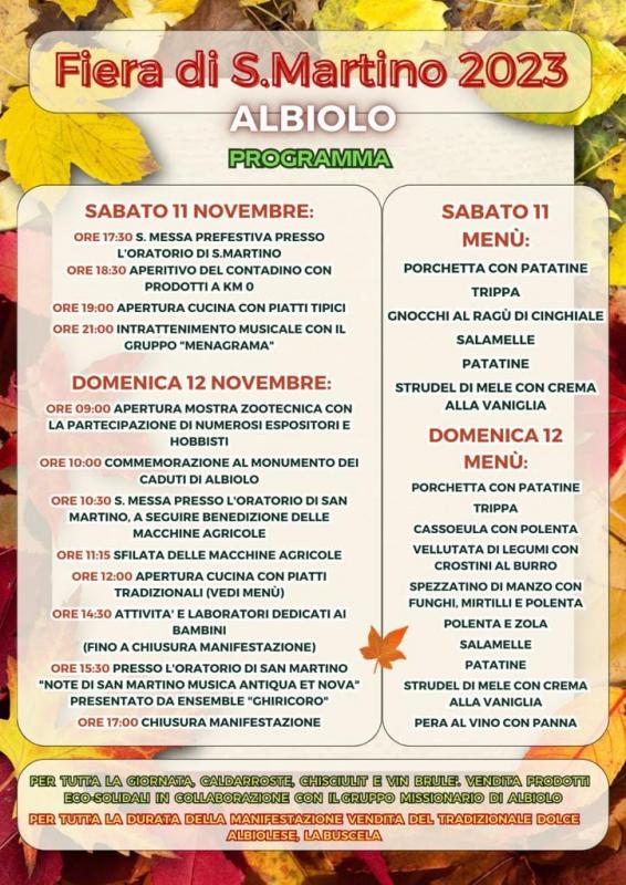 la fiera di San Martino ad Albiolo si svolgerà il 11 e 12 novembre 2023.