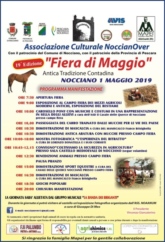 A Nocciano in provincia di Pescara si svolge nella giornata di Mercoledì 01 Maggio 2019 la 19a edizione della Fiera di Maggio - Antica Tradizione Contadina.