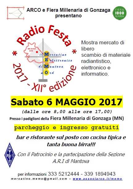 La manifestazione, organizzata dalla associazione ARCO con il patrocinio della Sezione ARI di Mantova è dedicata i radiomamatori ed hobbisti elettronici, ad ingresso gratuito e non ha scopi di lucro.