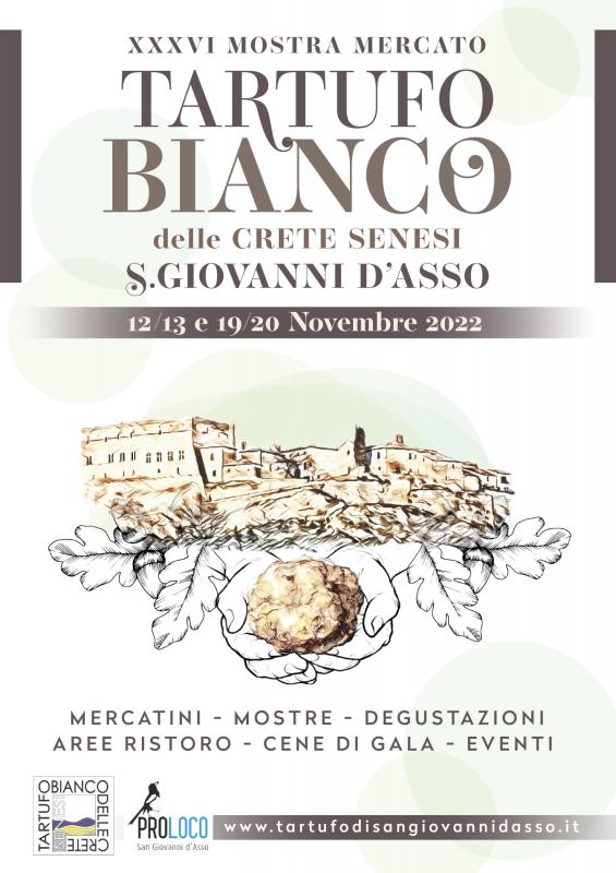Nei week end 12, 13 e 19, 20 Novembre 2022, la 36a edizione della Mostra Mercato del Tartufo Bianco delle Crete Senesi a San Giovanni d'Asso.