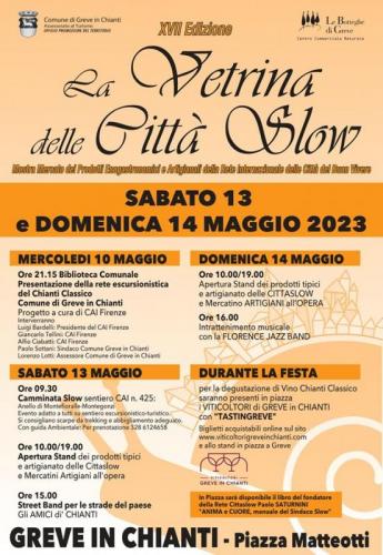 Sabato 13 e domenica 14 maggio 2023 torna a Greve in Chianti La Vetrina delle Città Slow - mostra mercato dei prodotti e dell'artigianato delle città aderenti alla “Rete Internazionale Città del Buon Vivere”.