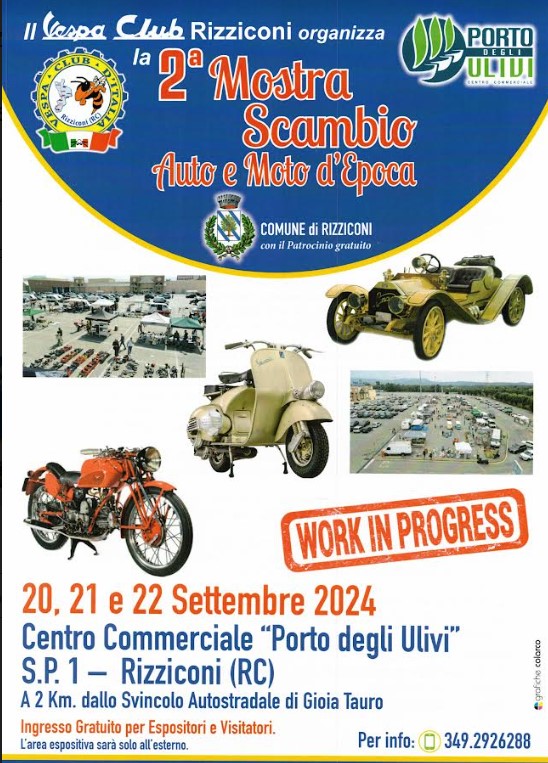 Scambio auto e moto d’epoca organizzata dal Vespa Club Rizziconi. Evento ideato e curato con la